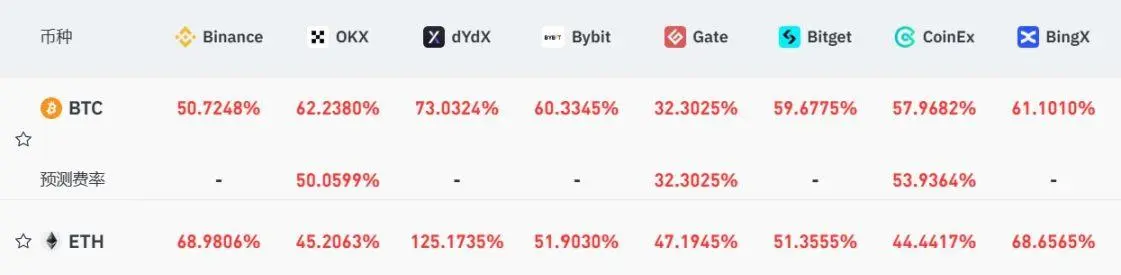 尤其是今天(1 月 2 日 00:00)开始,资金费率更是双双站上年化 50% 以上,这意味着多头每天都在大量补贴空头,不断失血。