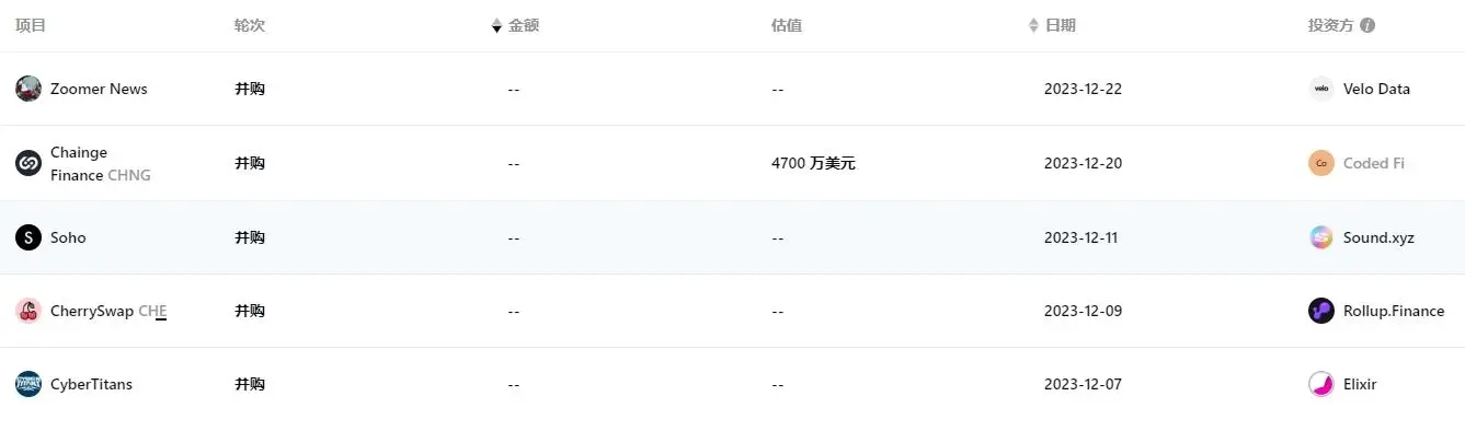 另外,12 月发生 5 起并购事件,加密领域头部玩家正在加速赛道布局的步伐,寻找优质标的完善自身战略短板,以扩大生态协同效应。