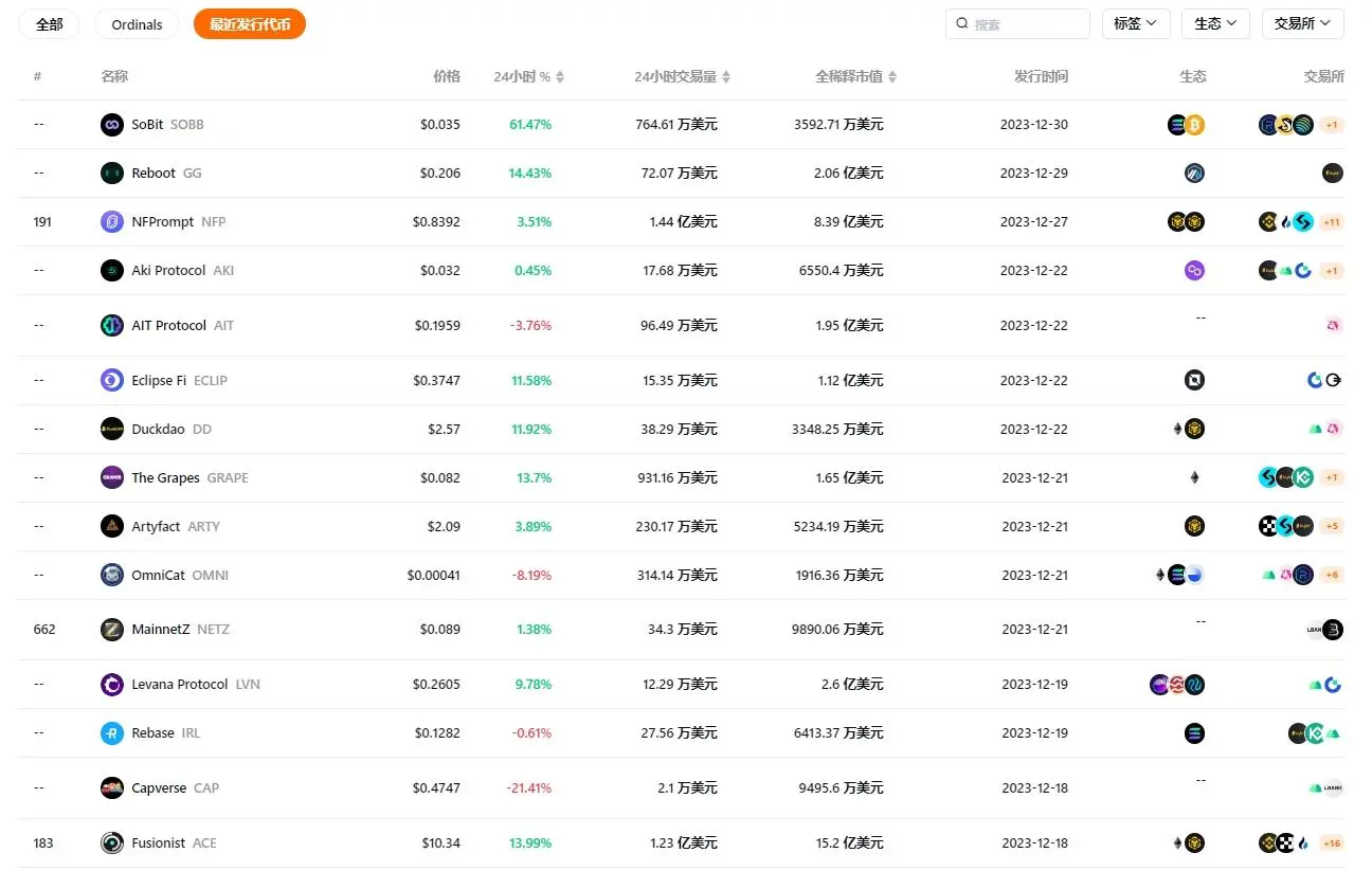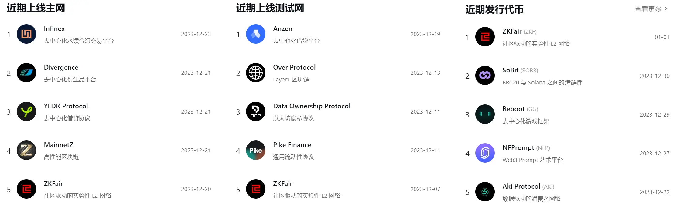在 12 月,RootData 还记录了许多项目的主网上线、新币发行等事件,帮助用户了解市场上重要的项目动态,掌握更早期的 alpha 机会。其中,RootData 记录了 27 个项目发行代币,创造今年新高。