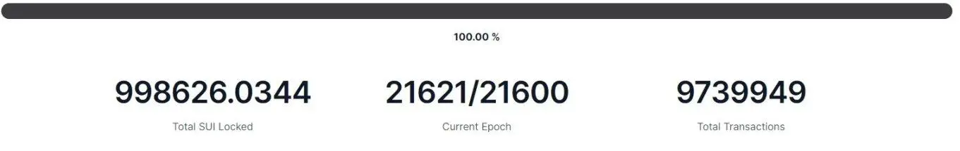 MOVE 铭文自带的 Burn 功能,几乎也可以算是无额外成本铸造。因此,社区中讨论并参与铸造 MOVE 铭文的地址不断提升,在昨天早些时间就进入了狂暴加速模式,并且一直处在该模式下,即每个地址分到 925 枚 MOVE。在狂暴加速模式下,社区中「科学家」与「手搓党」均通过锁仓 SUI 进行疯狂铸造 MOVE,直到下午 6 点左右 MOVE 铸造完成才停止。本次 MOVE 的铸造,用户地址数达 46, 000 个,交易笔数近 10, 000, 000 笔,累计锁定近 100 万个 SUI(如下图)。
