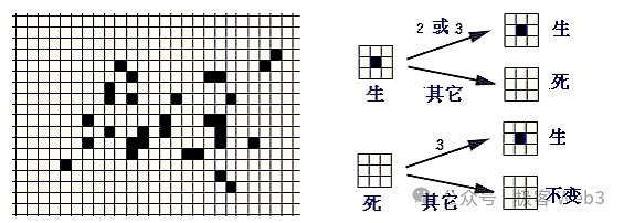 在对Cellula的机制设计展开解读前,让我们先来看看**vPOW最重要的核心——“康威生命游戏”,**它最早可追溯到冯诺依曼于1950年提出的“细胞自动机”概念,而后数学家约翰·康威在1970年正式提出“康威生命游戏”,用算法模拟自然界生命的演化规律。