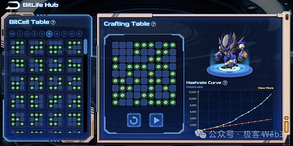 所以关键是,**如果我们要在链上资产发行层模拟出POW的效果,该怎么做呢?**在本文介绍的Gamefi项目Cellula中,通过引入著名的“康威生命游戏”算法,为链上虚拟的数字实体(称为“BitLife”)分配算力。说白了像是让一帮人在自己的培养皿中繁育细胞集群,随着时间推进,谁的培养皿中存活细胞越多,折算后得到的挖矿算力越高,越可能获得挖矿奖励。