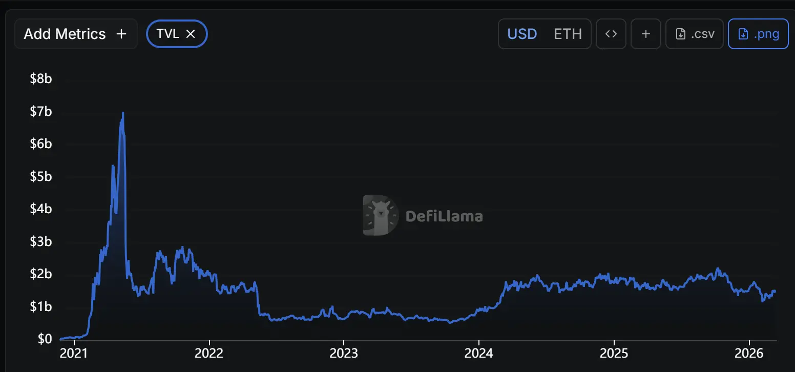 Venus 链上 TVL 统计 来源 :DeFillama
