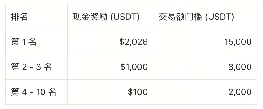 注:若对应名次无用户达到交易额门槛,则该名次轮空,奖励不予发放。